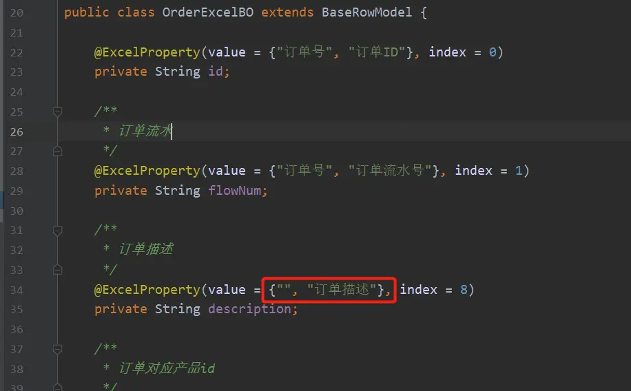 @ExcelProperty(value = {"订单描述"}, index = 2)