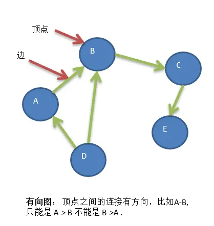 无向图: 顶点之间的连接没有方向,比如A-B,即可以是 A-> B 也可以 B->A .