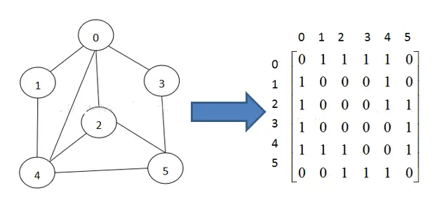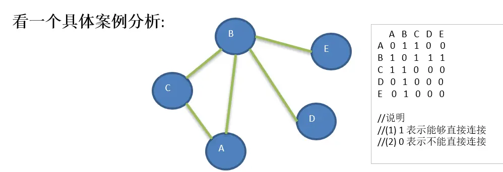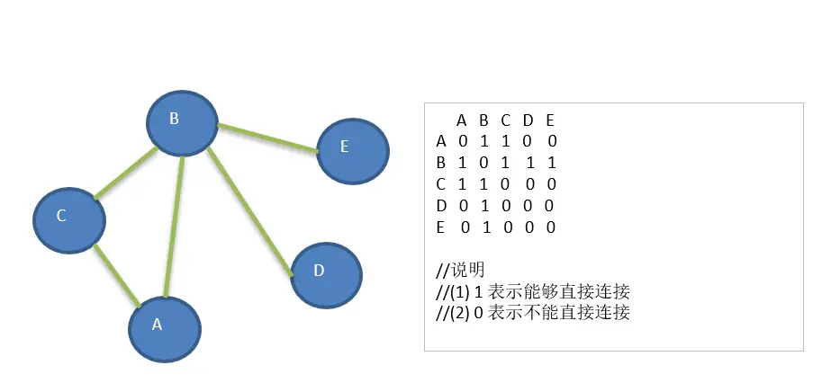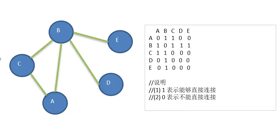邻接矩阵是表示图形中顶点之间相邻关系的矩阵,对于n个顶点的图而言,矩阵是的row和col表示的是1....n个点。