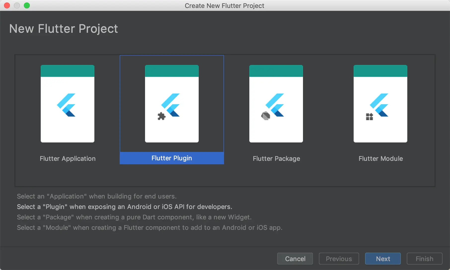 选中 Flutter Plugin 然后一路 Next 就可以了。