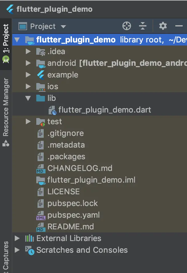 图中包含的几个主要的目录分别为 android,example,ios,lib 这四个目录: