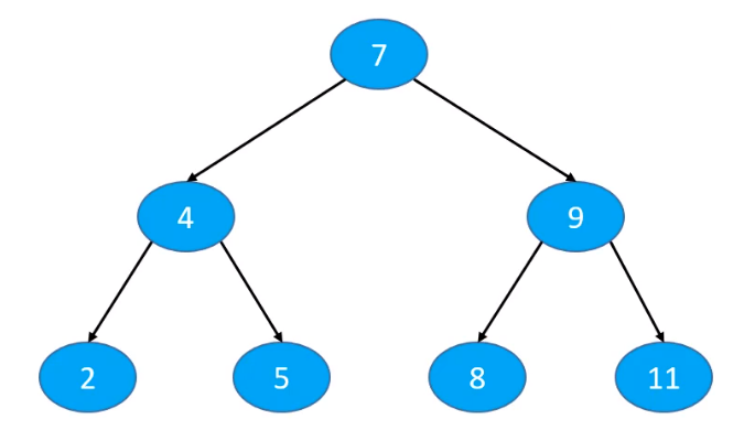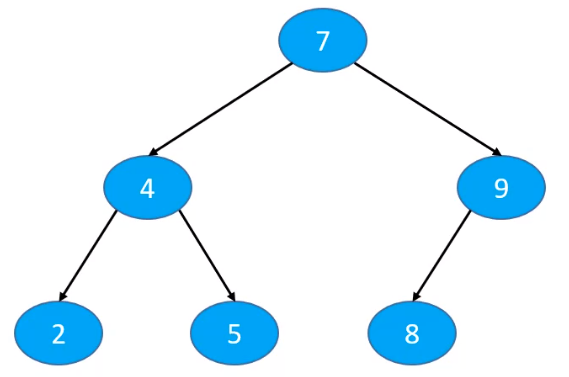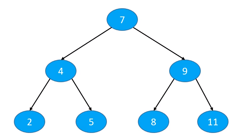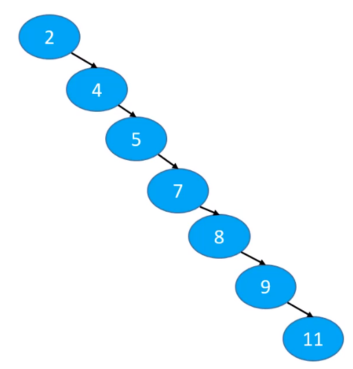 如果在前面添加节点时,是通过从小到大的顺序进行添加的话(即添加顺序为2,4,5,7,8,9,11),则二叉树的结果为