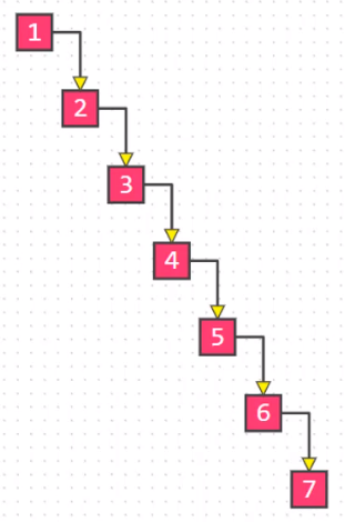 在这种情况下,树的高度就与元素的个数相等了,这是的复杂度为O(h),即为O(n),在这种情况下,二叉搜索树退化成链表,并且在n比较大时,第一种添加方式和第二种添加方式的性能差距很大,如当n = 1000000时,二叉搜索树的最低高度为20