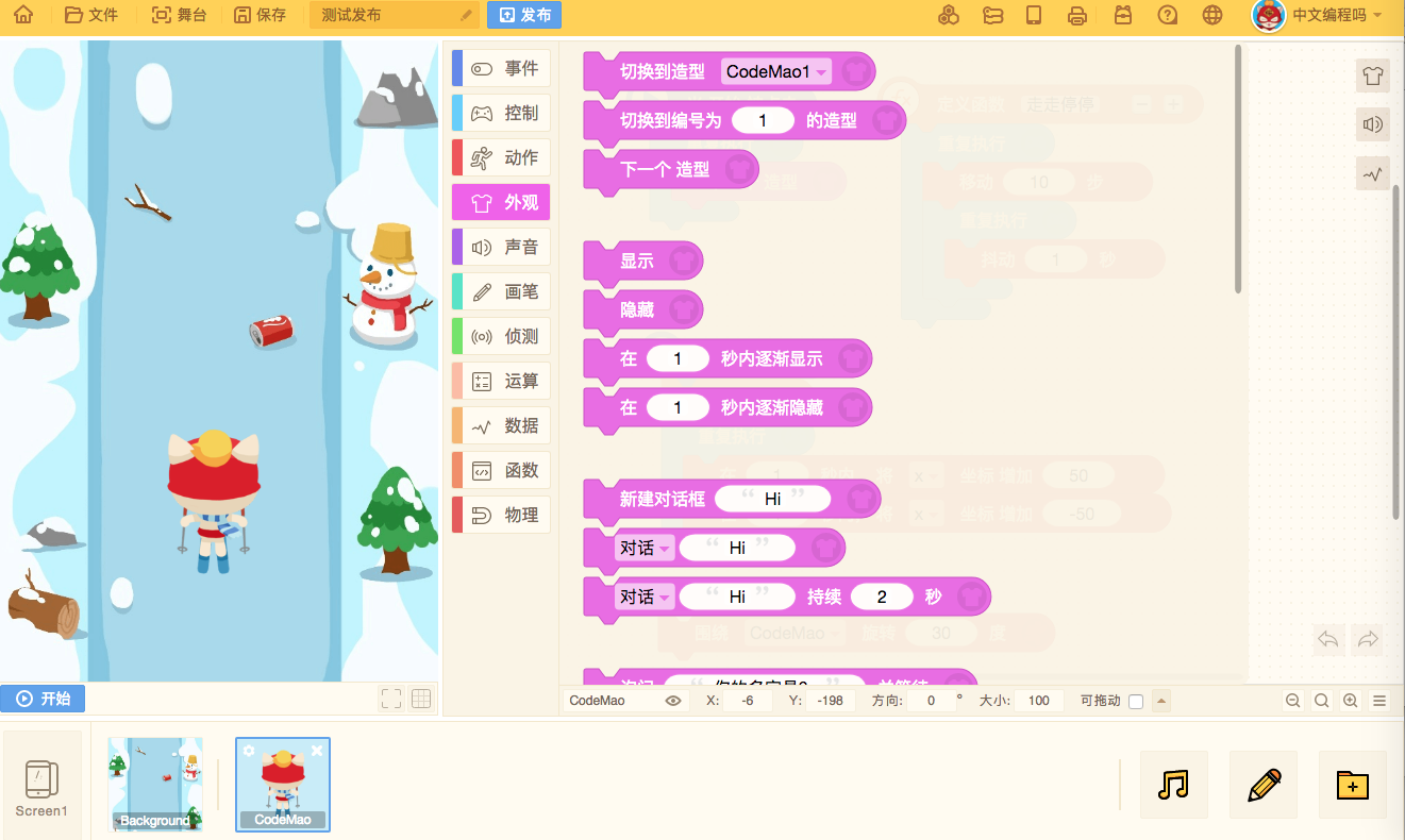 前两天偶遇编程猫推介(为什么没有中文的编程?), 第一眼感觉像Scratch, 求证之下确实, 并且据说有改良. 今天非常粗浅地尝试一下, 限于水平没有做出很炫的效果, 不过颇有些发现.
