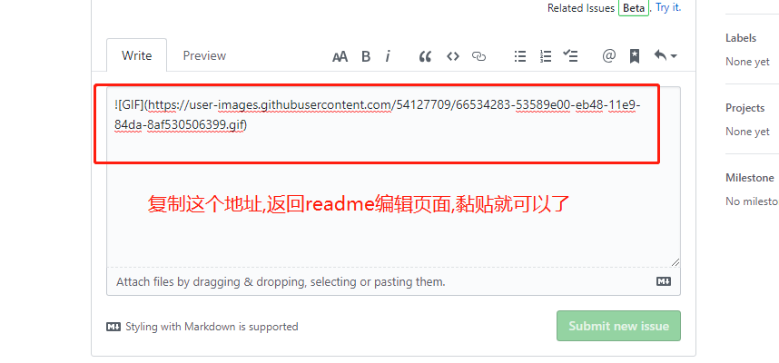 五.上传完成后你会得到一个地址,可以点击<preview>预览一下是不是你要的图片,如果是,直接复制这个网址返回readme的编辑页面,粘贴这个网址就可以了.