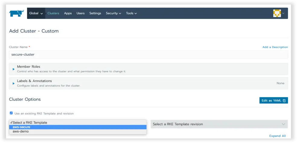 由于大多数企业需要同时管理多个集群,所以安全性是所有企业所应考虑的重中之重。因此Rancher 2.3引入了创新的“集群模板”这一功能。它可以让企业在整个基础架构中实施一致的集群配置,进而帮助企业降低安全风险。具体而言,通过使用集群模板: