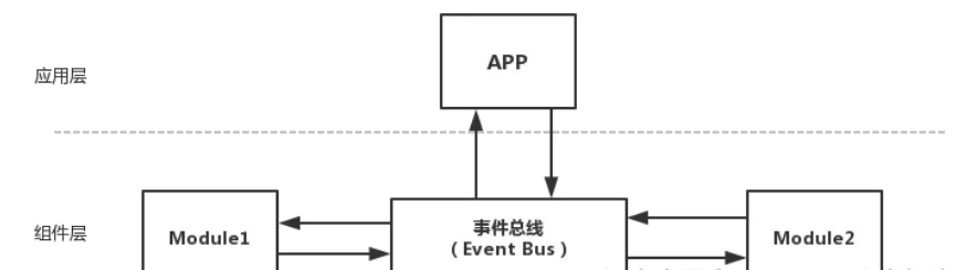 除了这种以通过引入第三者方式,还有一种解决方式是以事件总线方式,但这种方式目前开源的框架中使用比例不高,如图: