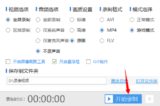 4、文件位置设置完成之后就可以开始录制游戏了。先打开电脑上你要录制游戏,在游戏开始的同时点击页面中的“开始录制”按钮。