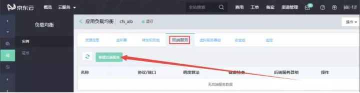 打开京东云控制台,依次点击左侧导航网络-负载均衡,在应用型中选择华北-北京点击创建按钮