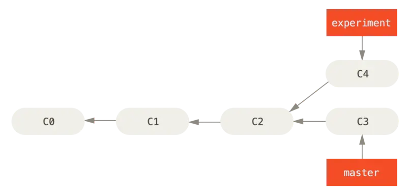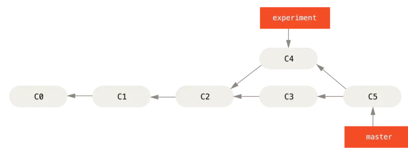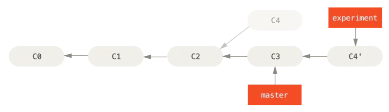 它的原理是首先找到这两个分支(即当前分支 experiment、变基操作的目标基底分支 master)的最近共同祖先 C2,然后对比当前分支相对于该祖先的历次提交,提取相应的修改并存为临时文件,然后将当前分支指向目标基底 C3, 最后以此将之前另存为临时文件的修改依序应用