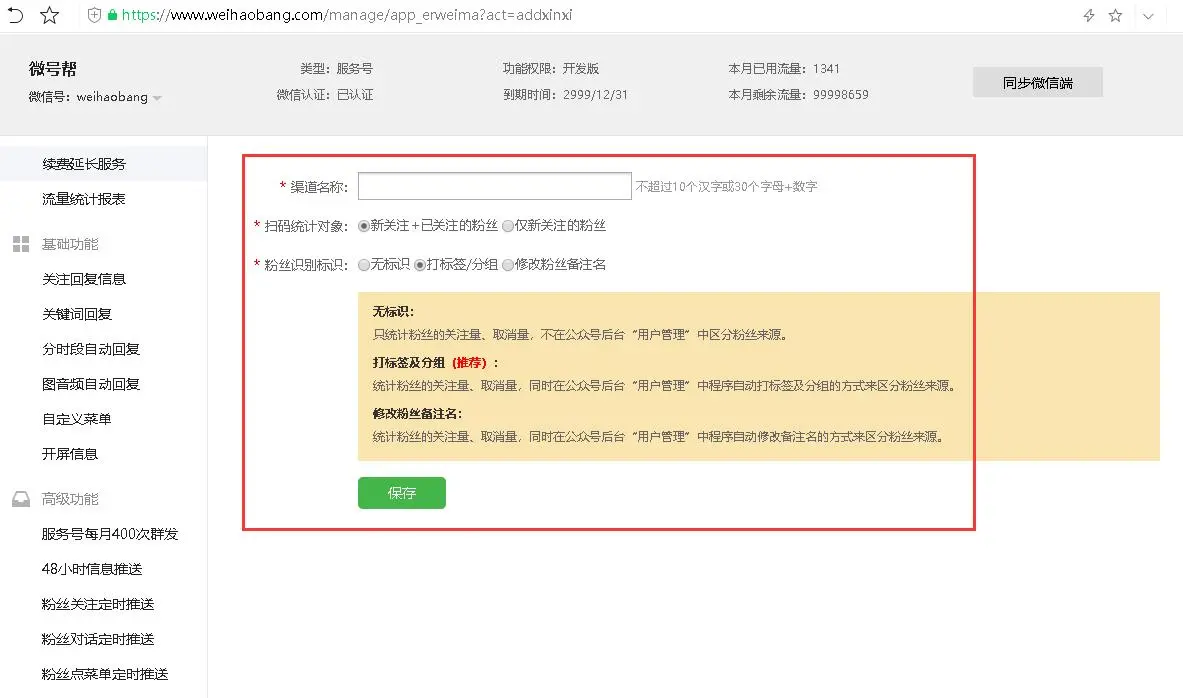 扫码统计对象可以仅统计新关注的粉丝,也可以全部都统计,关注粉丝自动打标签分组或修改备注名等。