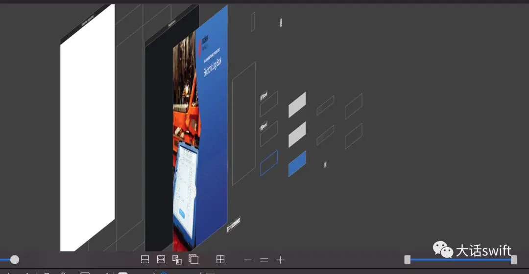 我们将视角切换一下来带EffectWindow,也就是点击Xcode左侧的代码图层结构,你会看到可视化的区域渲染出了一个黑色的Scene,这个应该就算是我们黑屏是展示的部分啦