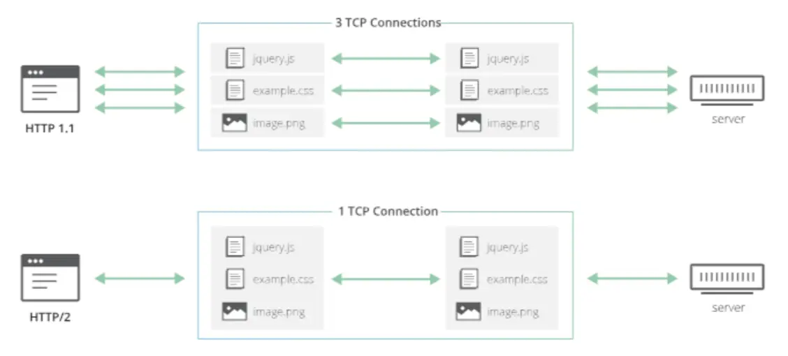服务器可以对一个客户端请求发送多个响应。换句话说,除了对最初请求的响应外,服务器还可以向客户端推送额外资源,而无需客户端明确地请求(例如:在http1.1中去请求index.html,需要解析完成之后再去请求js和css)