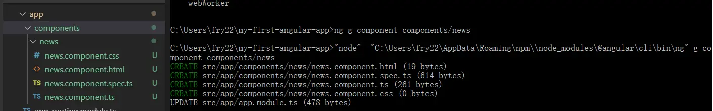 以下命令说明在项目的app目录下,创建一个components文件夹,然后在其中创建一个new组件,如下图所示: