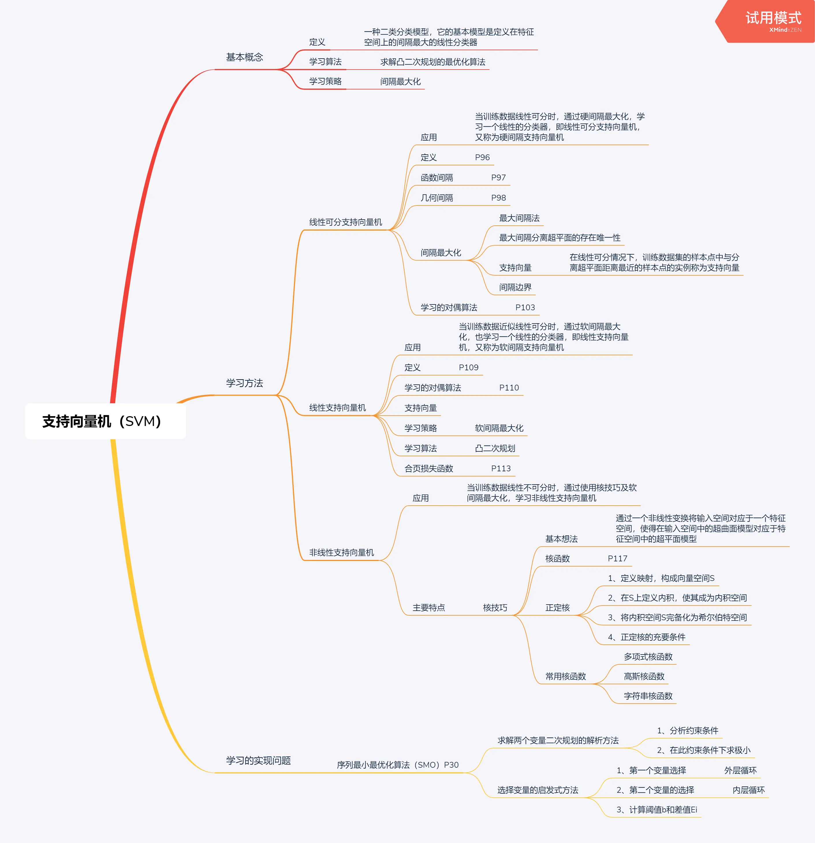 《统计学习方法》思维导图总结 不完美也ok 2019-10-10 2,782 阅读1分钟 第一章 统计学习方法概论 第二章 感知机 第三章 K近邻法 第四章 朴素贝叶斯法 第五章 决策树 第六章 逻辑斯蒂回归与最大熵模型 第七章 支持向量机 第八章 提升方法 第九章 EM算法及其推广 第十章 隐马尔可夫模型 第十一章 条件随机场