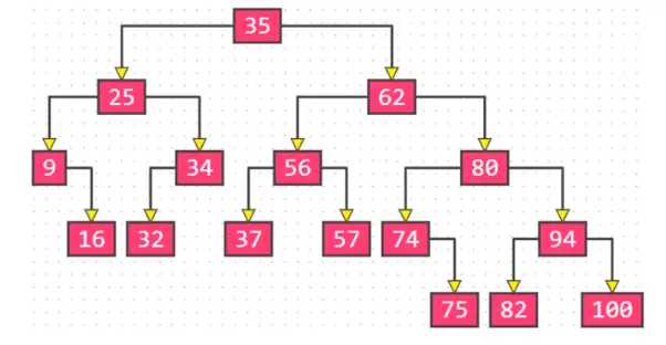 输入如下数据:35,37,34,56,25,62,57,9,74,32,94,80,75,100,16,82
