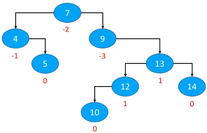 其中节点5,10,14位叶子节点,由于叶子节点的左右子树为空,因此左右子树的高度差为0,即叶子节点的平衡因子为0