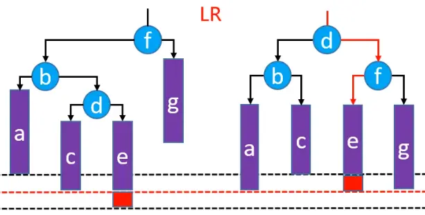 - 上图中绿色的方块不存在[下图],旋转完成后的子树,高度减少了1,这样就可能导致再网上的节点失去平衡,因此需要做LL中的操作,来让整棵树恢复平衡