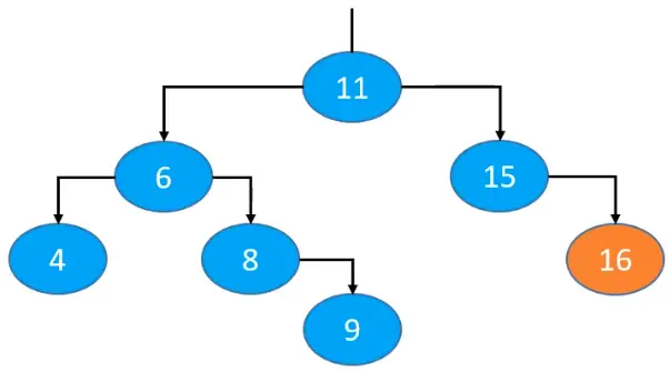 假设现在有如下的一棵二叉搜索树,我们要对 其做删除16的操作