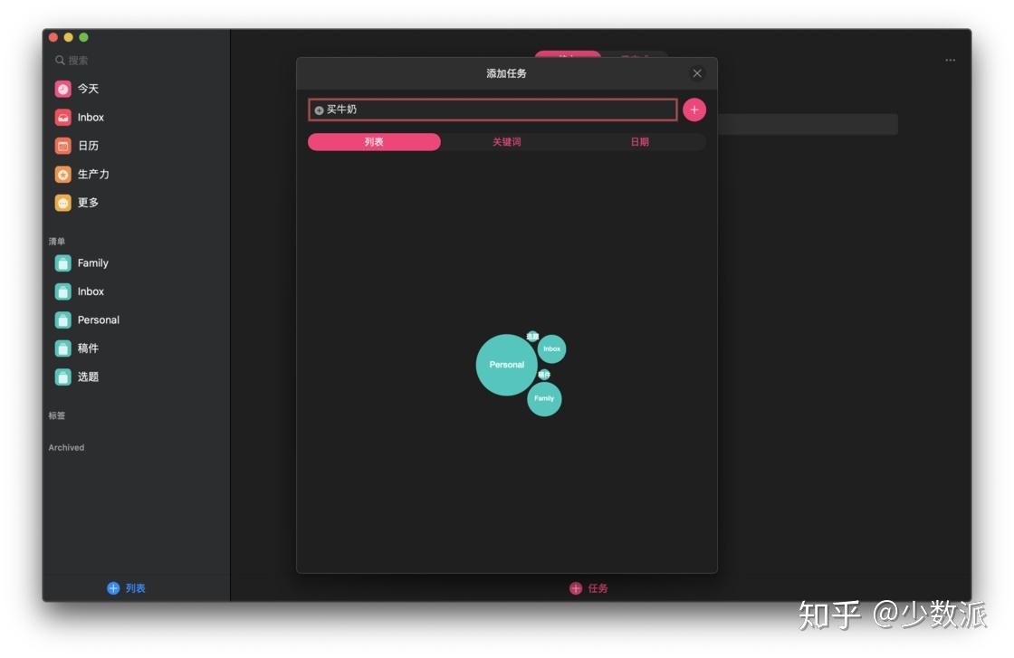 与 PDF Viewer 相比,Planny 3 的界面给了我一种放大版 iPad 应用的感觉,不管是应用界面下方的稍微显小的「列表」「任务」按钮、左侧边栏的清单,还是任务添加窗口不太「协调」的选择框样式。