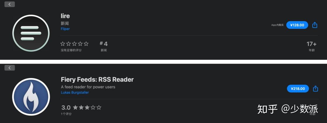 拿更直观的例子来说,lire 和 Fiery Feeds 是 iOS 平台老牌也非常优秀的 RSS 阅读工具,前者的 iOS 版本售价 30 元,后者的订阅价格为 50 元 / 年。在移植到 macOS 平台之后,lire 的售价定在了 128 元,Fiery Feeds 的售价更是定在了 218 元,拿同类应用 Reeder 对比,它的 macOS 版本的售价只有 68 元。