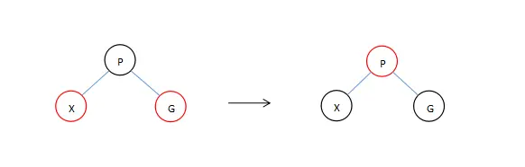 由于P和X节点都为红色节点这破环了红节点下面的节点必须为黑色节点的规则。