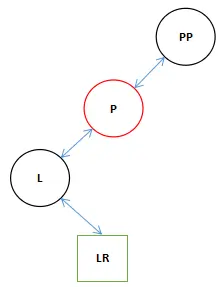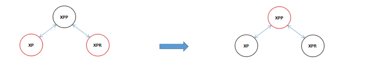因为我们传进来的是XPP,所以结合上一次的向左旋转我们在向右旋转的时候看到全图应该是这个样子的。(注:XPPP可能是XPP的左父节点也可能是右父节点这里不影响,而且可以是任意颜色)