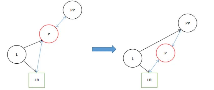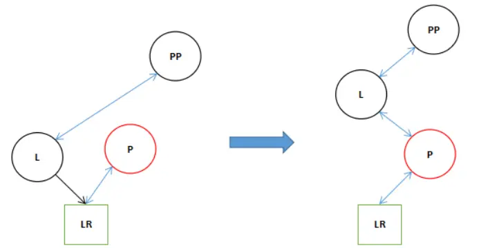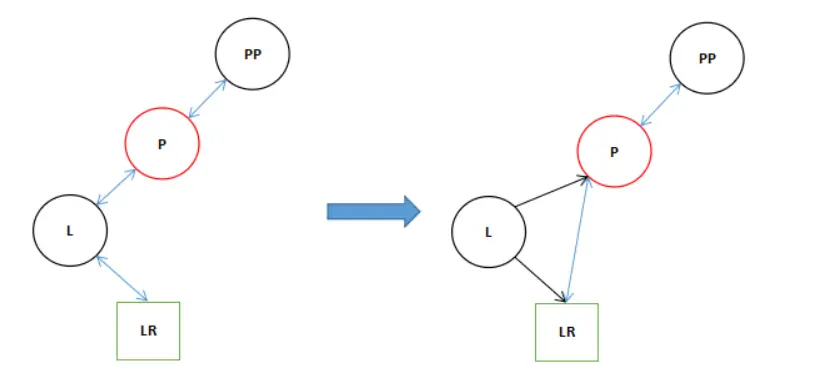 4.这里我们认为LR是存在的,其实这个不影响主要的旋转,为空就指向null呗,直接执行完9和10行。