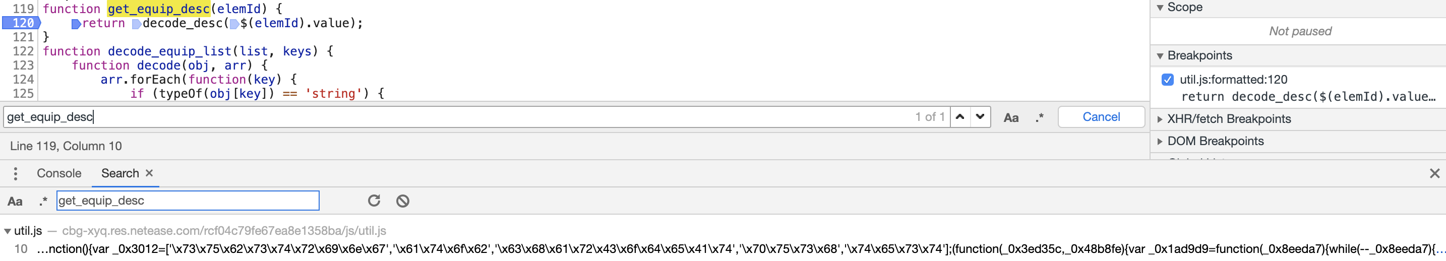 果然我找到了这个看着就很像解密的东西,打上断点,刷新一下,成功进入断点。