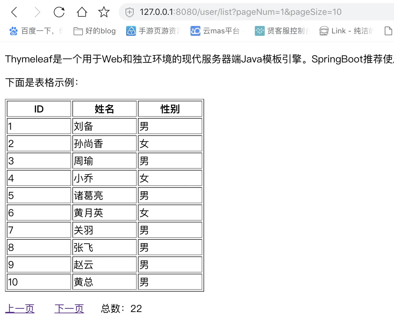 通过浏览器访问:http://127.0.0.1:8080/user/list?pageNum=1&pageSize=10 进行测试。效果如图: