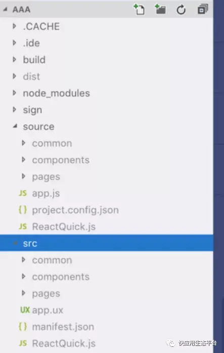src刚刚通过`nanachi watch:quick`转译出来的快应用代码,里面都是ux文件。