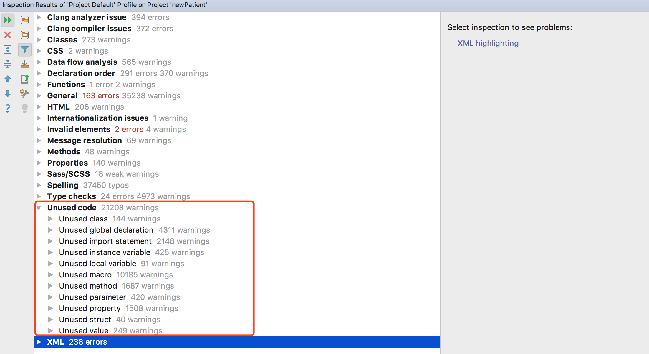 通过APPCode 打开对应的工程文件 选择 Code - > inspect Code 分析代码,去掉无用的引用及代码。包括无用的类、函数、宏定义、value、属性等,而safe delete功能使得删除一些由于runtime被调用到的代码时更加安全智能。当然还是要人工校准过再确认删除。
