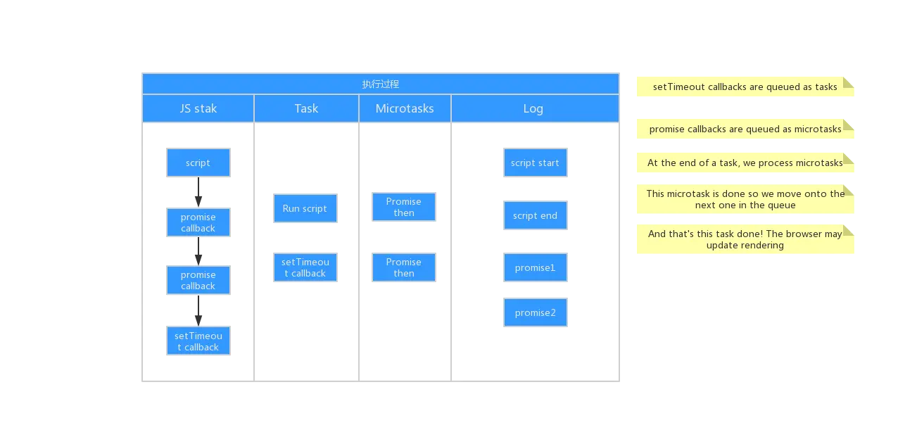 原文的demo有炫酷的动态步骤演示,我这里画了静态图片替代。想看更生动的说明的同学猛戳原文(* ̄︶ ̄) → task-microtasks-queues-and-schedules!