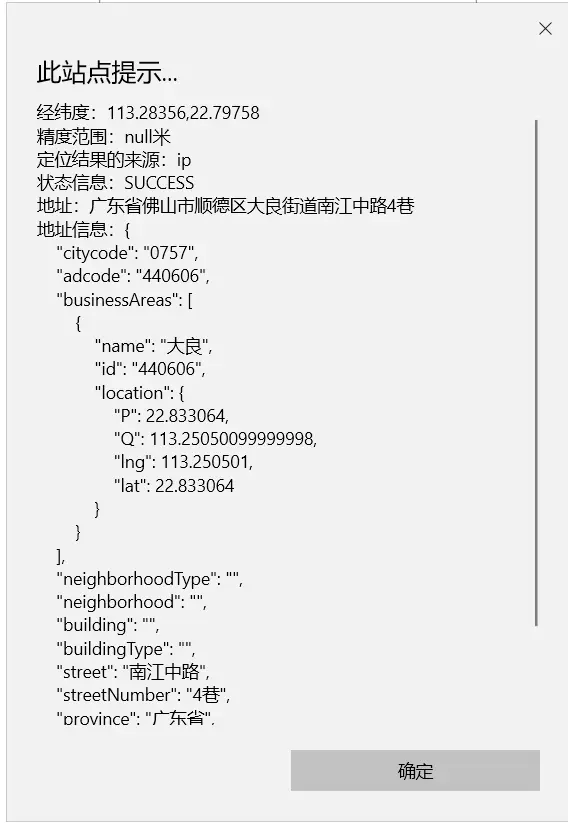 '\n地址信息:' + JSON.stringify(obj.addressComponent, null, 4);
