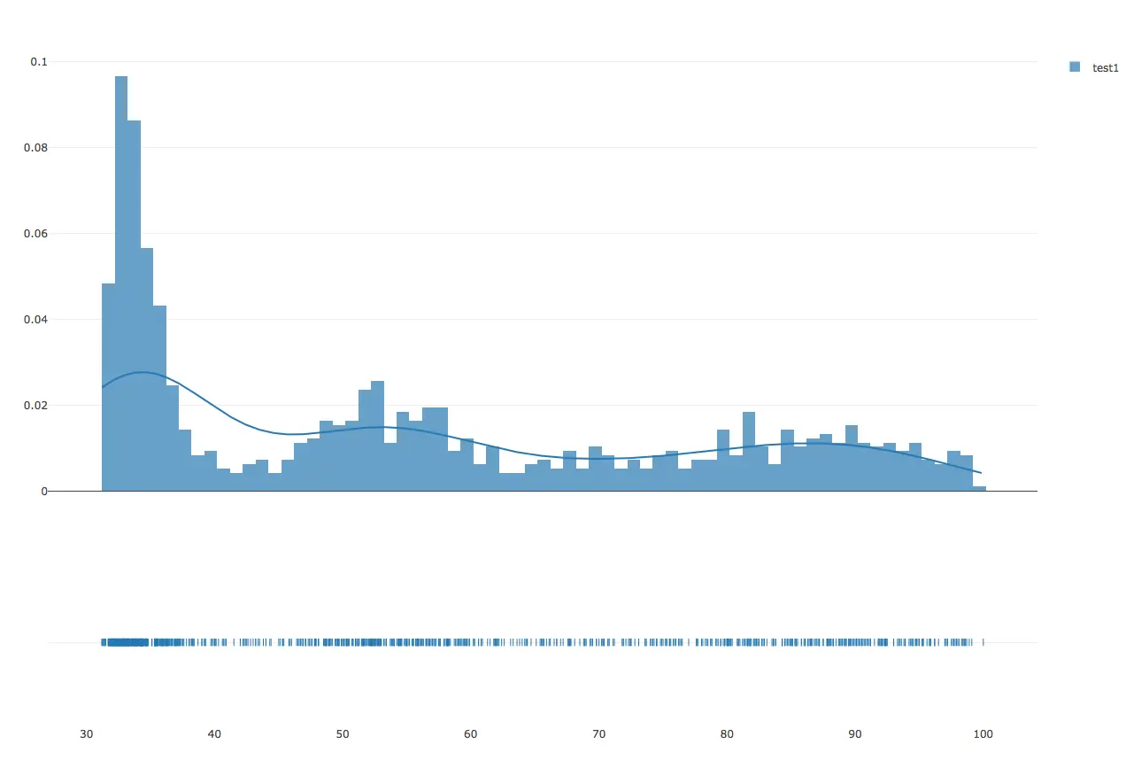 本人在做接口测试的过程中,使用了 python+plotly 统计接口信息,之前一直用Violin图表,今天就尝试了一中新的图表,distplot 图表,其实就是整数的柱形图,然后加上一个变化曲线。下面来分享一下代码,供大家参考。(接口响应时间存在一个本地的文件中了。)