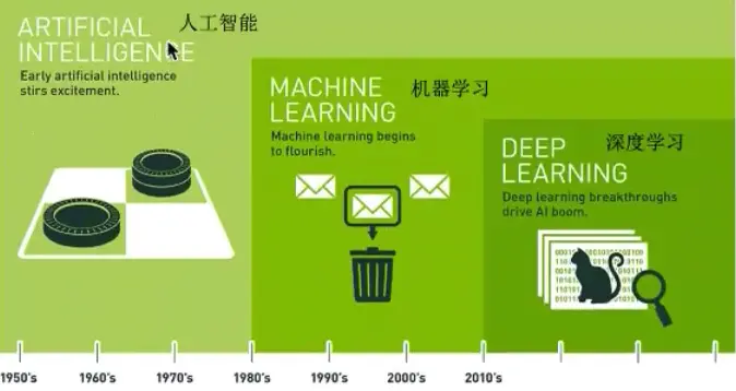 人工智能包裹着机器学习,机器学习包裹着深度学习,他们是人工智能这个技能书上不停进化的各个特征点