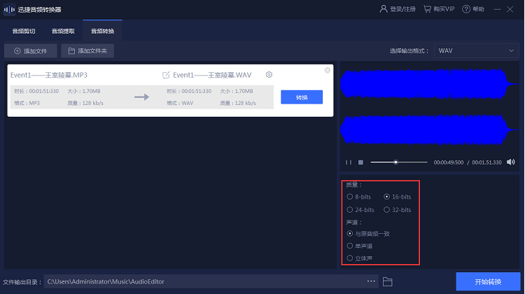 第五步、接着,我们便可以开始转换音频格式了,点击界面中的“开始转换”即可开始转换我们的音频,然后耐心等待音频转换成功便可以了。