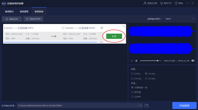 第六步、最后我们点击界面中的“打开”选项便能够查看我们转换好的音频文件了,十分的简单。