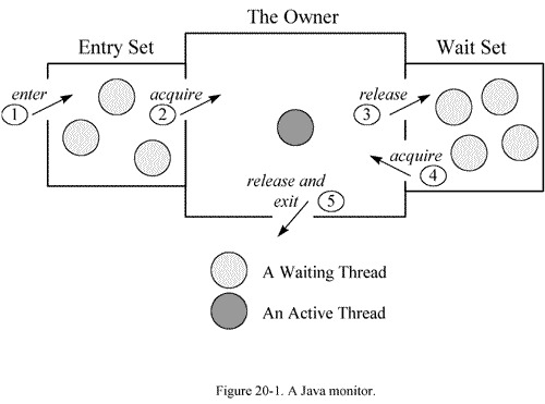 Java中每一个对象都可以成为一个监视器(Monitor), 该Monitor由一个锁(lock), 一个等待队列(waiting queue ), 一个入口队列( entry queue)组成. 对于一个对象的方法, 如果没有synchonized关键字, 该方法可以被任意数量的线程,在任意时刻调用。 对于添加了synchronized关键字的方法,任意时刻只能被唯一的一个获得了对象实例锁的线程调用。