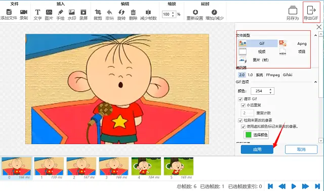 6、利用上面的工具对GIF编辑完成后,想要导出的话点击右上角的保存至或导出GIF的按钮。这样就可以选择保存的文件夹并导出动图了。