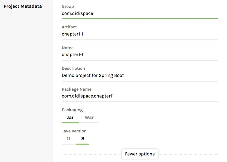 Project Metadata:项目的元数据;其实就是Maven项目的基本元素,点开More options可以看到更多设置,根据自己组织的情况输入相关数据,比如: