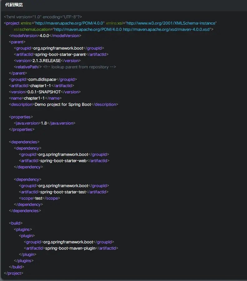 打开pom.xml,一起来看看Spring Boot项目的依赖: