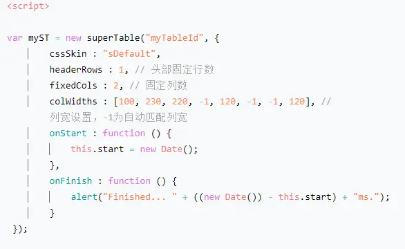 1,简短说明使用 superTables.js 实现: @1:复杂表头固定(向下滚动时表头固定,向右滚动时表头跟随数据列) @2:复杂表头列点击事件(如:列的升降序) @3:左侧列固定