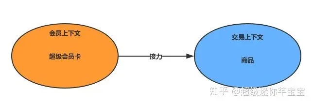 限界上下文可以很好的隔离相同事物的不同内涵,通过严格规范可以进入上下文的对象模型,从而保护业务抽象行为的一致性,回到交易领域,饿了么是最开始支持超级会员玩法的,为了支持对应的结算诉求,需要接入交易系统来完成这个业务,我们通过分解问题域来降低复杂度,这个时候就对应切割为会员域和交易域,为了保护超会卡在进入交易领域的时候,不扰乱交易内部的业务逻辑,我们做了一次映射: