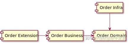 然后是分层依赖,Martin Flower已经提供了一套经典的分层封装的模式,拿简化的订单模块举例: