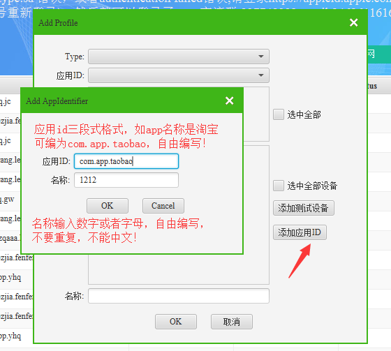 在申请ios描述文件之前先加个应用id(如果之前加过要用以前加过的应用id,可跳过此步)