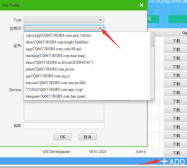 点击右下角+ADD,在应用id项,点击下拉三角符号即可看到以前加过的记录!