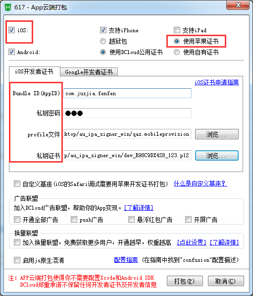 各开发者工具打包教程,根据自己使用的平台去打包,证书都是一样用。