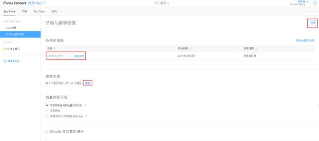 价格时间表:免费APP就设置为免费、收费的app就根据情况设置价格。