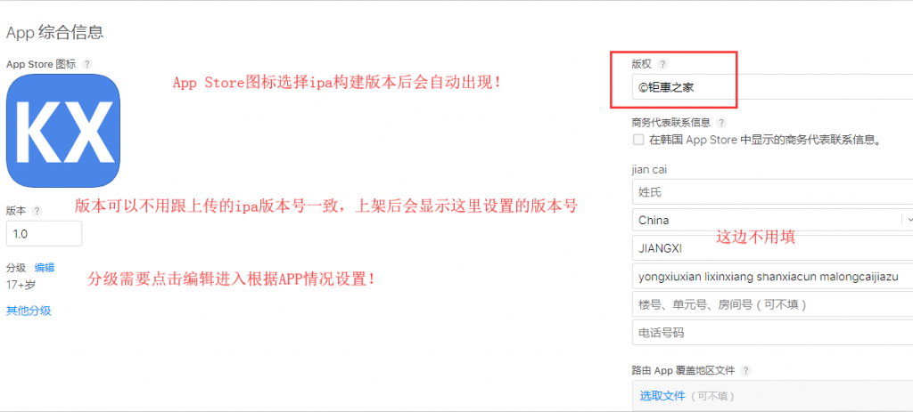 7.1、ipa上传及测试后,配置App Store后台各项信息!